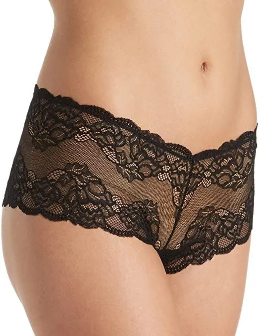 Une magnifique dentelle florale avec une bordure festonnée affriolante, cette culotte à couverture légère montre juste un petit bout de joue.