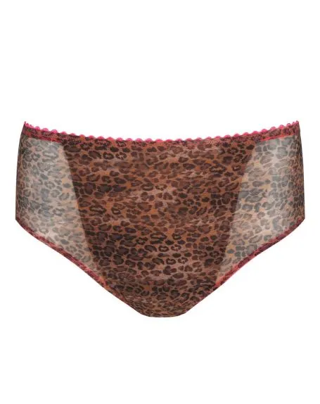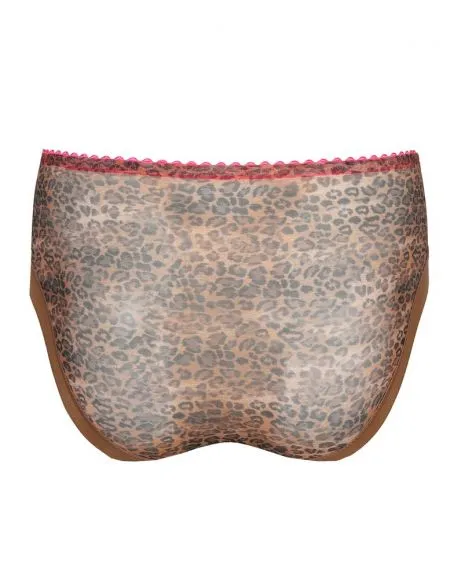 Culotte taille haute stylée en tulle, imprimée d’un motif animalier hyper réaliste. Ludique et estivale avec un ruban picot de couleur vive. La taille haute enveloppe confortablement votre corps, les jambes sont finement finies pour que la culotte ne coupe pas.
