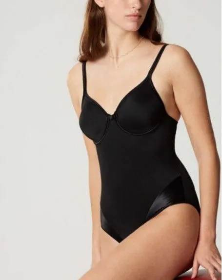 La ligne nuage de Lejaby est la référence de la lingerie seconde peau depuis 1995. Elle allie confort et féminité grâce au raffinement du contraste de matière mat brillant et aux finitions satin au décolleté. Ce body invisible produit un effet poitrine ronde tout en scuptant légèrement le corps.