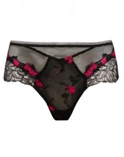 Le shorty de Lise Charmel est taille basse, dévoile légèrement les fesses dans sa dentelle et résille sexy.