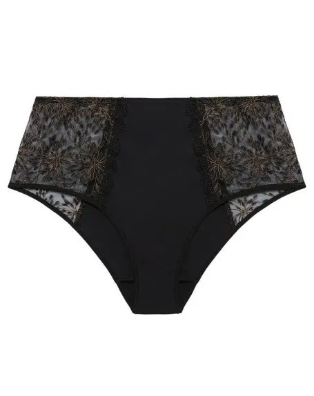 La culotte Singulière de la marque Simone Pérèle offre une silhouette affiné par sa forme montante. La broderie au motif floral vient elle habiller les cotés de la culotte.
