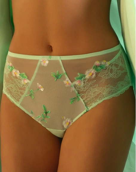 Le slip haut affine visuellement la silhouette, pour un effet gainant et ventre plat sur l’avant. Sa forme emboîtante et large sur les côtés offre un confort parfait. Les motifs floraux brodés épouseront à merveille votre corps.