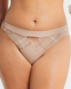 Le slip de la collection Albanach par Louisa Bracq offre une forme sophistiquée avec une légère ouverture sur le devant. Le motif quadrillé est transparent pour un effet ultra séduction, il est accompagné d’une ceinture et un dos unis.