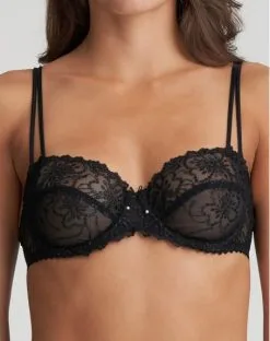Ce balconnet Marie Jo collection Jane est un modèle d’une extrême sensualité. Il découvre davantage le décolleté. La broderie orne l’ensemble du bonnet et est magnifiquement mise en valeur. La fine bretelle ajoute encore au raffinement du modèle.