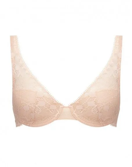 Ce soutien-gorge coque plongeant propose une dentelle souple et raffinée pour un look à la fois quotidien et élégant. Bonnet B à F.