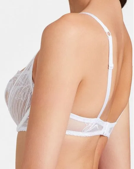 Le soutien-gorge corbeille Aubade de la collection Fleur De Tattoo propose une forme classique avec un ornement de bandes satinées qui remontent sur les bretelles. De plus, dans l’entre-seins se trouve un noeud satiné ainsi qu’un bijou doré pour une touche de glamour et d’élégance.