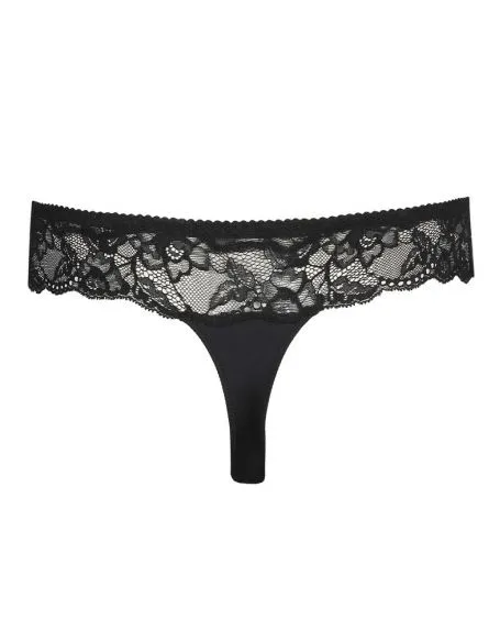 String rétro entièrement en dentelle noire, orné d’une rose brodée vintage. Le devant est doublé. La coupe haute de la jambe vous donne un look sexy.