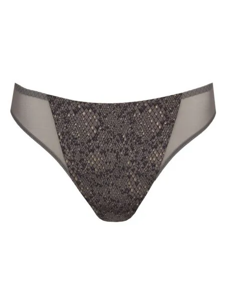 String en tissu satiné lisse à imprimé serpent. Les ouvertures hautes des jambes et le tulle sur les jambes vous donnent un look sexy.