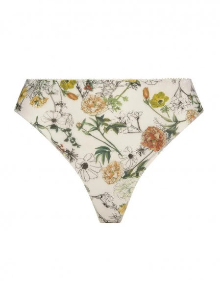 Le tanga Antigel de la collection Liberté en Fleur offre une bordure élastique en polyamide élasthanne fantaisie à ponts, elle souligne délicatement la taille et s’harmonise avec le motif fleuri. Les modèles sont féminisés par un fin galon de dentelle Jacquard au dessin végétal.