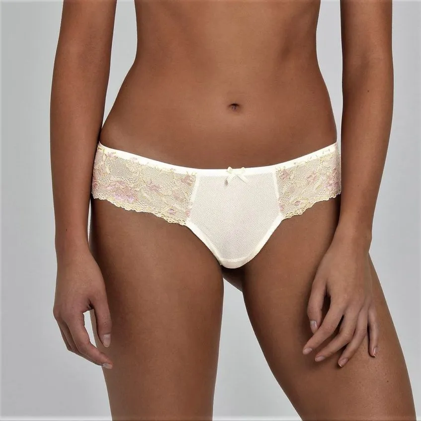 Le shorty sensuel est en mesh délicat all-over sur le devant et séduit avec une dentelle tricolore transparente sur l’arrière. Sans élastique et doté de bords plats en dentelle, il ne cisaille pas la peau et sait se faire discret même sous les vêtements moulants.